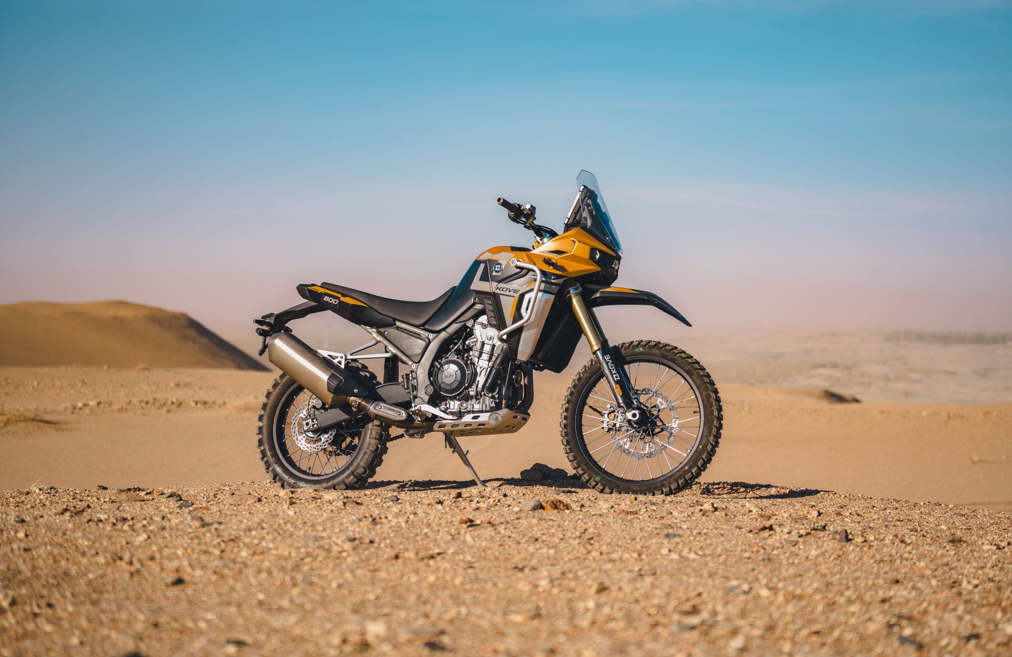 Die KOVE 800X-Rally ist ein professionelles Offroad-Bike für echte Hardcore-Fahrer. Ausgestattet mit Titan-Fußrasten, 3 mm Aluminium-Unterbodenschutz, speziellem Tank und Tuning vom KOVE Dakar Team bietet es maximale Robustheit.
